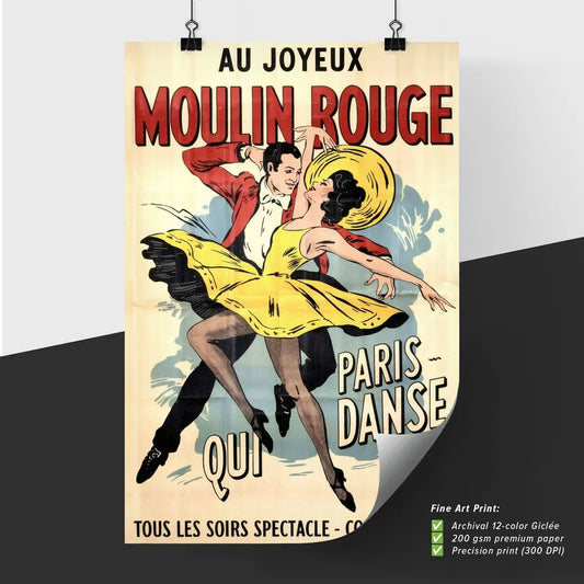 Moulin Rouge - Vintage Dance Performance Poster – Fine Art Poster Inspired by Vintage Advertisements