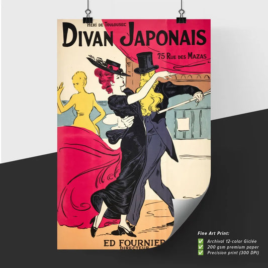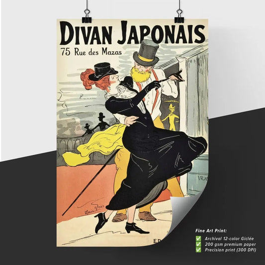 Divan Japonais - Art Nouveau poster featuring a couple in a theatrical setting. – Fine Art Poster Inspired by Vintage Advertisements