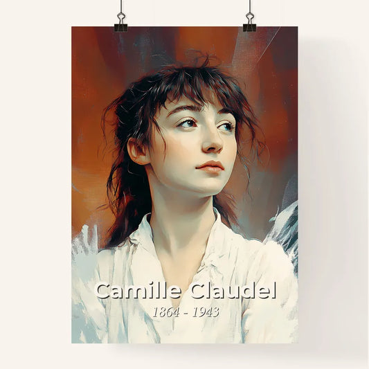 Portrait of Camille Claudel, 1864 - 1943. Impressionistic painting of a woman with dark hair and a white shirt.