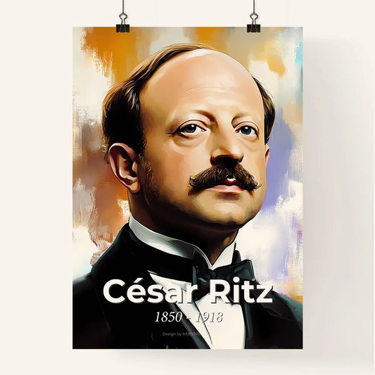 Portrait of César Ritz, 1850 - 1918. Impressionistic painting of a man with a mustache.
