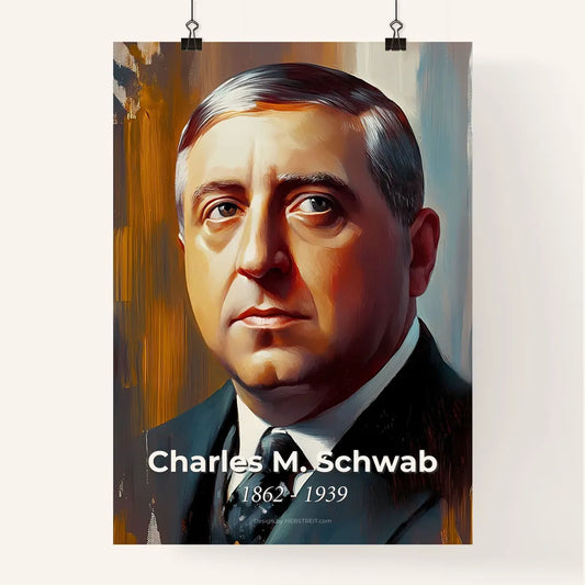 Portrait of Charles M. Schwab, 1862 - 1939. Impressionistic painting of a man in a suit.
