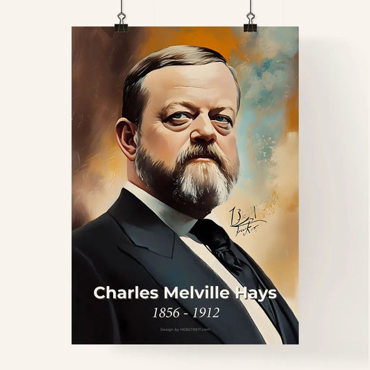 Portrait of Charles Melville Hays, 1856 - 1912. Impressionistic painting of a man with a beard and mustache.