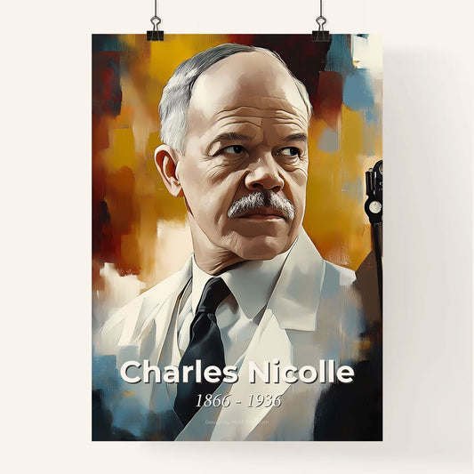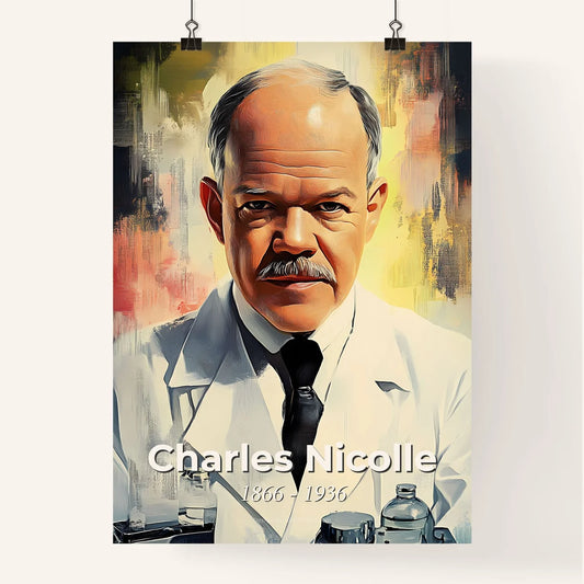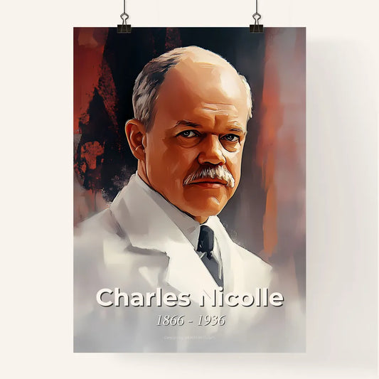 Portrait of Charles Nicolle, 1866 - 1936. Impressionistic painting of a man in a white coat.