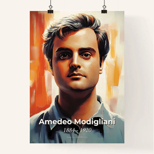 Portrait of Amedeo Modigliani, 1884 - 1920. Impressionistic painting of a man in a collared shirt.