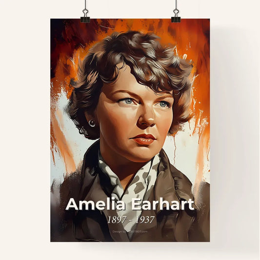 Portrait of Amelia Earhart, 1897 - 1937. Impressionistic painting of a painting of a woman.