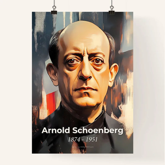 Portrait of Arnold Schoenberg, 1874 - 1951. Impressionistic painting of a man with a serious face.
