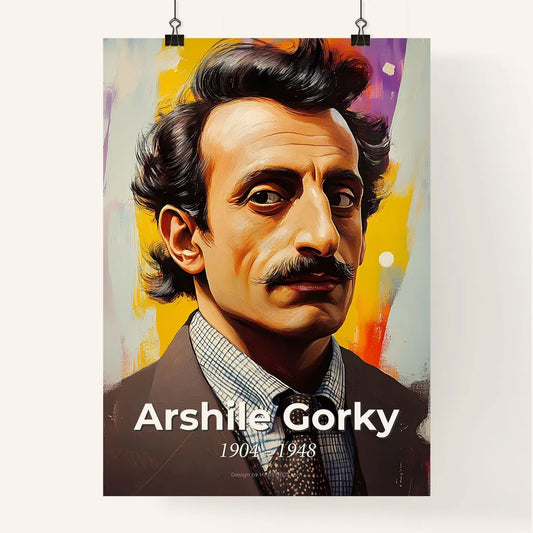 Portrait of Arshile Gorky, 1904 - 1948. Impressionistic painting of a man with a mustache.