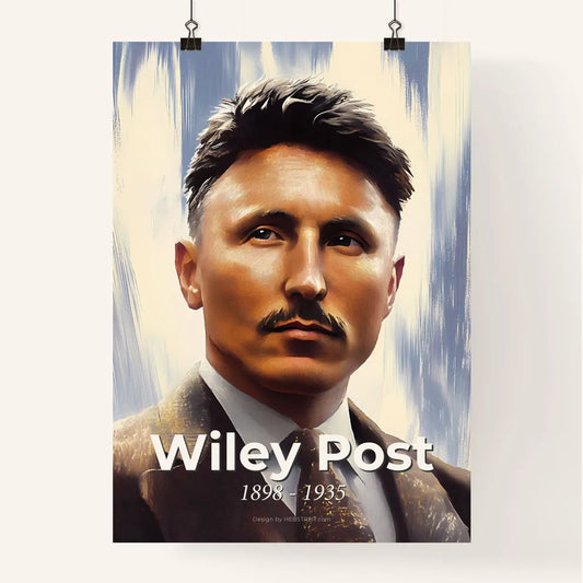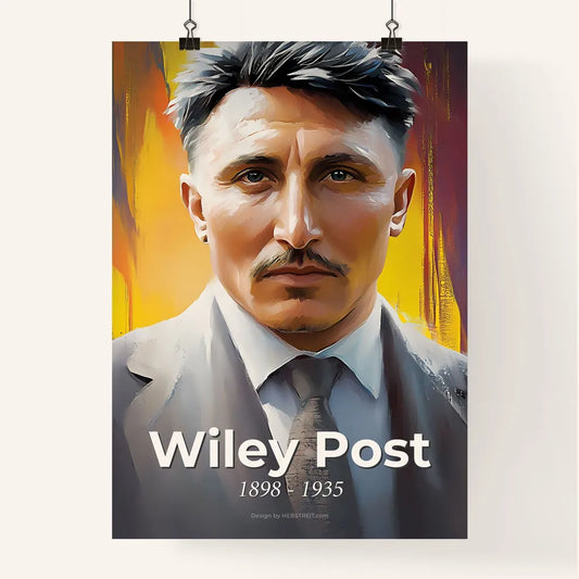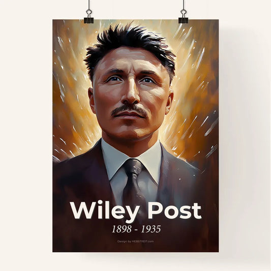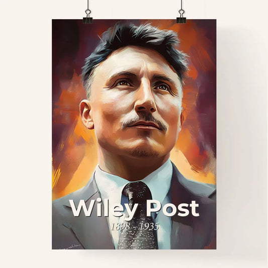Portrait of Wiley Post, 1898 - 1935. Impressionistic painting of a man in a suit and tie.