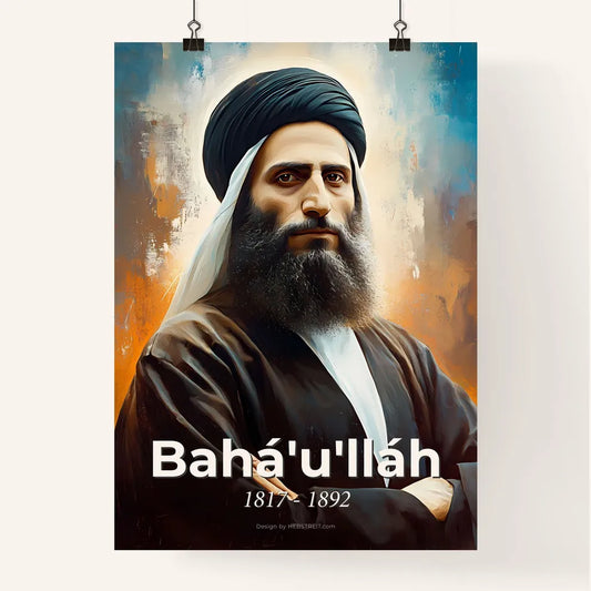Portrait of Bahá'u'lláh, 1817 - 1892. Impressionistic painting of a man with a beard and turban.