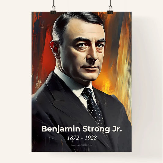 Portrait of Benjamin Strong Jr., 1872 - 1928. Impressionistic painting of a man in a suit and tie.