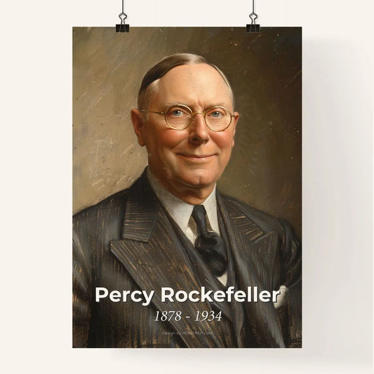 Captivating Portrait of Percy Rockefeller: An Elegant Tribute to a Banking Visionary - Contemporary Art Print on Beige Background