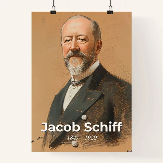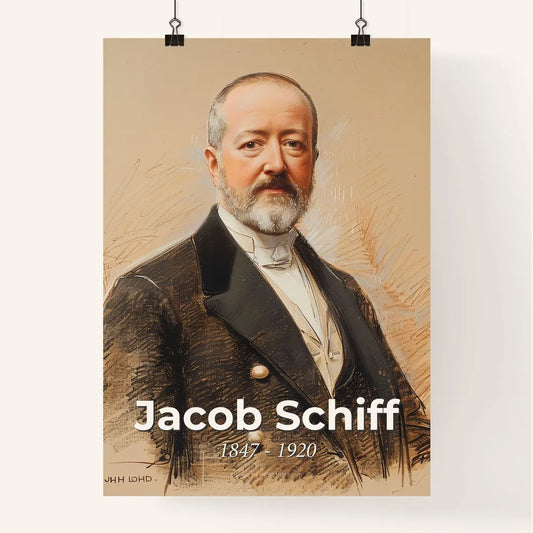 Elegance in Finance: Jacob Schiff (1847-1920) - Captivating Contemporary Portrait on Beige, Perfect for Home Decor & Gifts