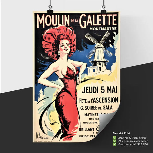 Moulin de la Galette - Vintage French Cabaret Poster – Fine Art Poster Inspired by Vintage Advertisements