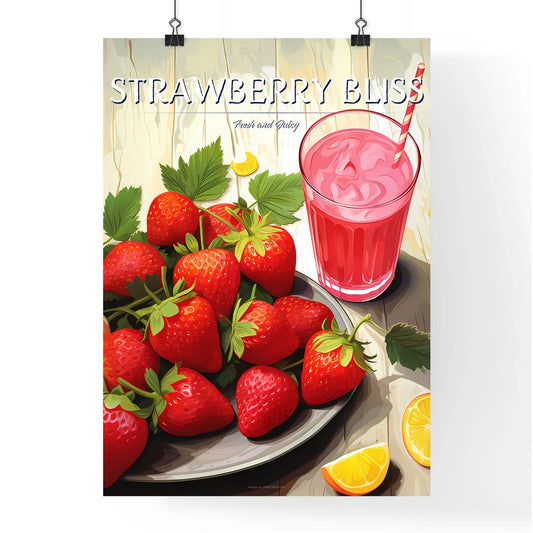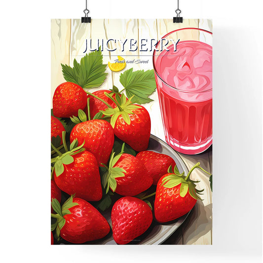 Plate Of Strawberries And A Glass Of Pink Juice Art Print