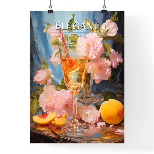 Peach Martini - A Glass Of Wine Next To Peaches And Flowers