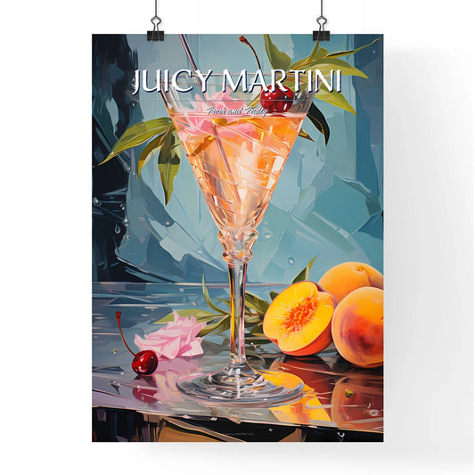 Peach Martini - A Glass Of Liquid With Fruit And Cherries