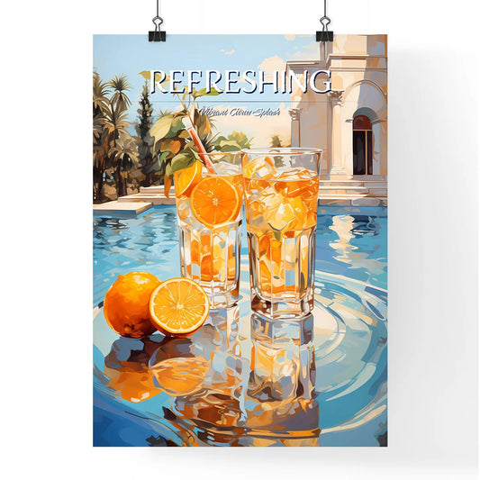 Orange Cocktail Stands On Edge Of Pool - Two Glasses Of Orange Juice And Oranges On A Pool Table