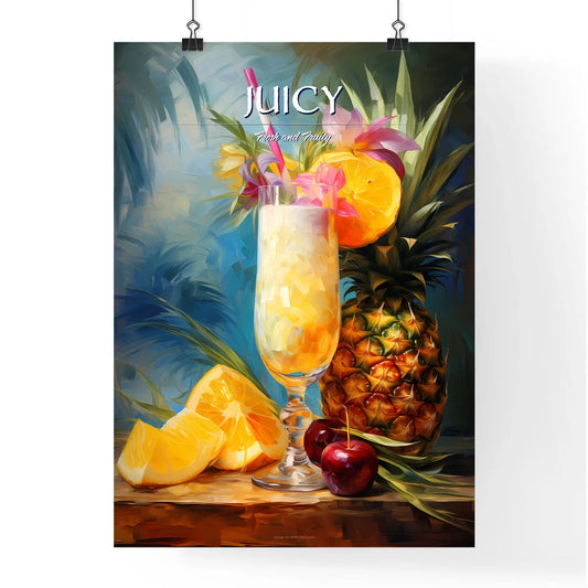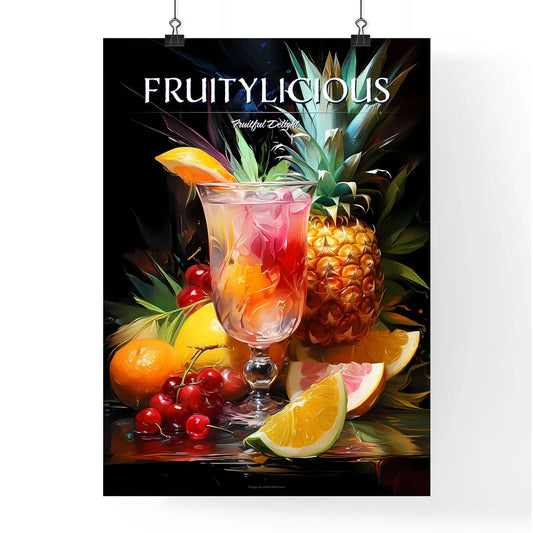 Pia Colada Cocktail - A Painting Of A Glass Of Fruit And A Pineapple