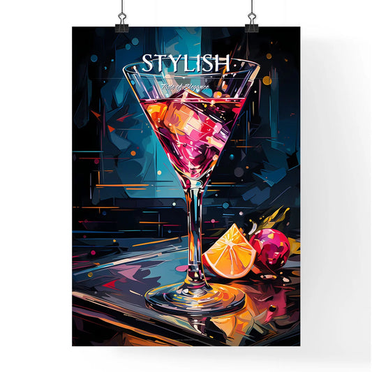 Cosmopolitain Cocktail Retro Design - A Glass With A Drink And A Slice Of Orange