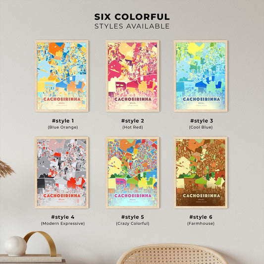 Colorful CACHOEIRINHA BRAZIL Fine Art Map Poster | Customizable