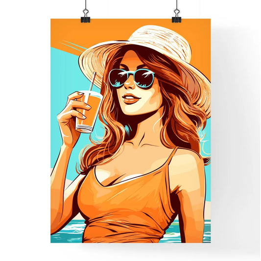 Coconut Fresh Cocktail Beach Woman Drinking - A Woman Wearing A Hat And Sunglasses Holding A Drink