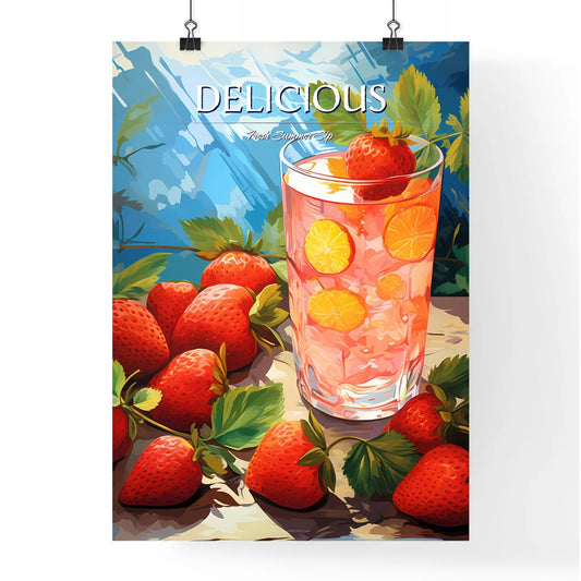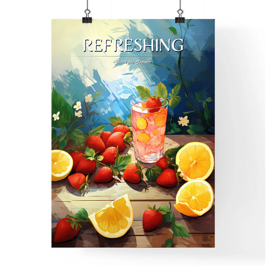 Glass Of Strawberry And Lemonade On A Table Art Print