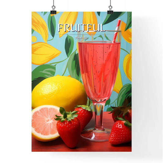 Glass Of Pink Drink With Straw Next To Strawberries And Lemons Art Print