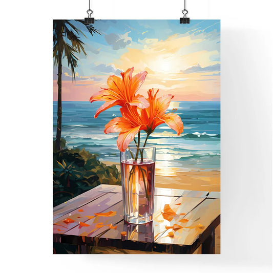 Glass Of Cocktail With Lily Flower At The Beach - A Painting Of Flowers In A Glass On A Table