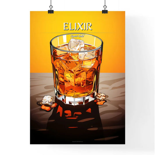 Glass Of Amber Liquid With Ice Cubes Art Print