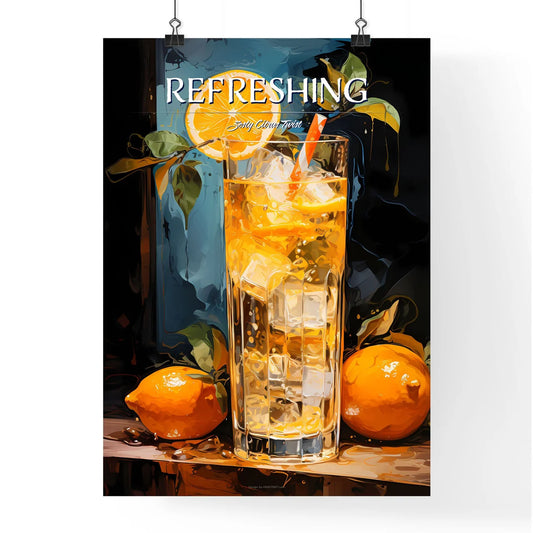 Funny Art Deco Cocktail - A Glass Of Liquid With Ice And Orange Slices