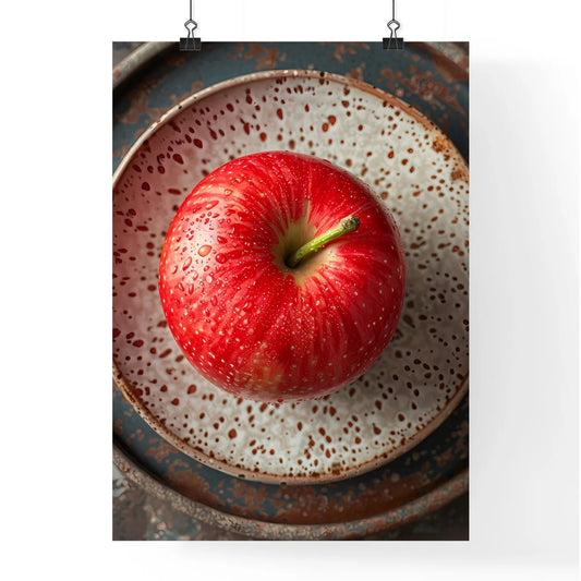 Painting Red Apple on Plate Art Vibrant Colors Abstract Fruit Plate