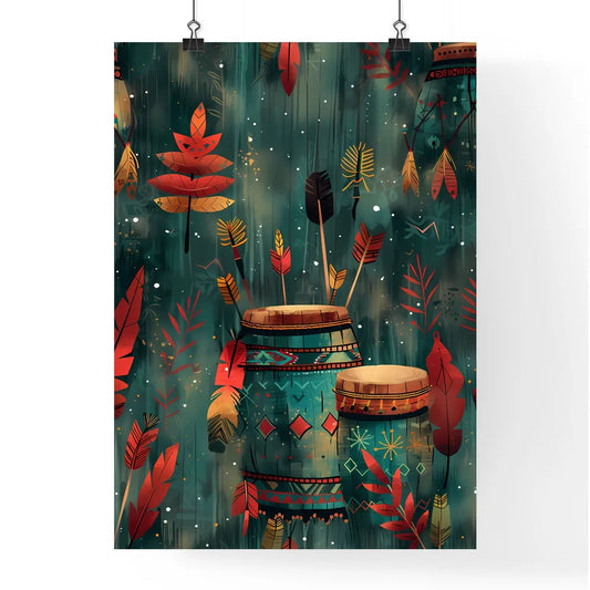 Native American Drums and Arrows Seamless Pattern: Vibrant Organic Art in Forest Green and Browns for Nursery Decor