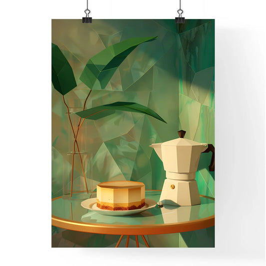 Origami Cubist Still Life: Low Poly Coffee Pot and Cheesecake, UHD 16K