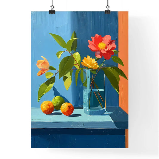 Painting Of A Vase With Flowers In It And Apples On A Table Art Print