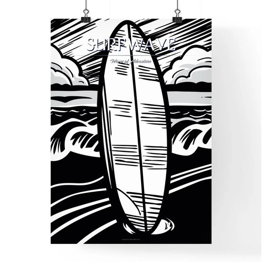 Surfboard In Front Of Beach - A Black And White Drawing Of A Surfboard