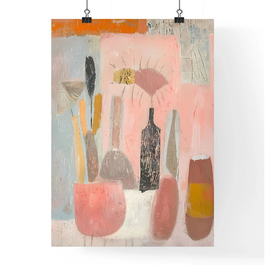 Abstract Floral Vase Painting Inspired by Nature in Pink, Brown, Orange, Green Bloomsbury Style