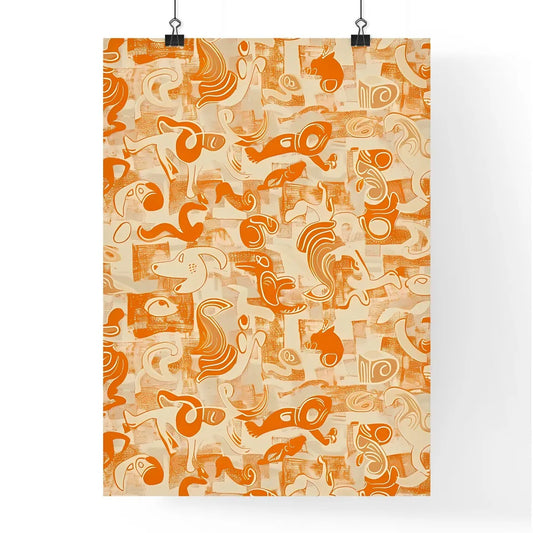 Abstract Art Poster: Striking Orange and Black Decor in Modern Living Room