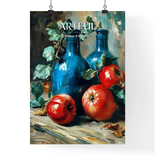 A Poster of impressionistic still life - A Painting Of Apples And Blue Bottles