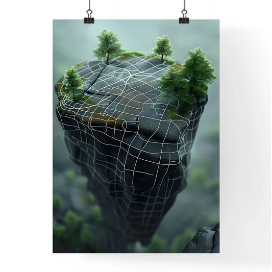 Abstract Black Rock Trees Grids Canvas Art Vibrant Painting Focal Point