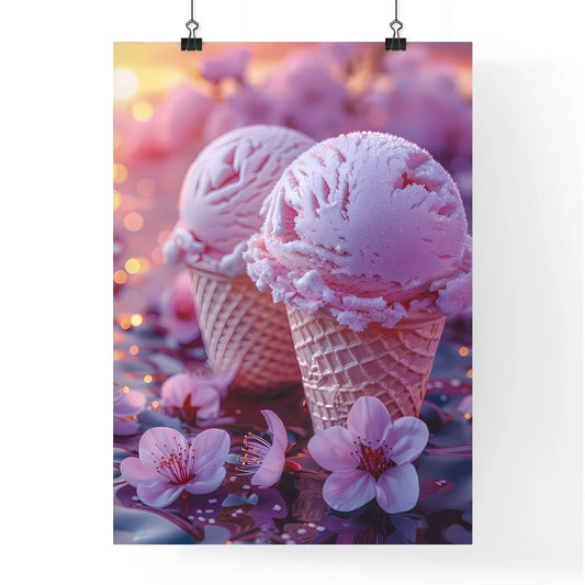 Exquisite Digital Art of Afternoon Ice Cream Cones with Blooms Bathed in Sunset Hues