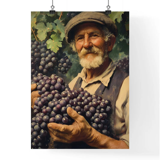 A French vineyard owner - Art print of a man holding grapes in his hands