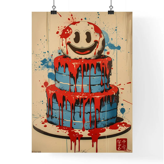 1960s Japanese Pop Art Wedding Cake Character in Vibrant Colors - Retro Vintage Poster with Acid Smiley Symbol and Simple Background