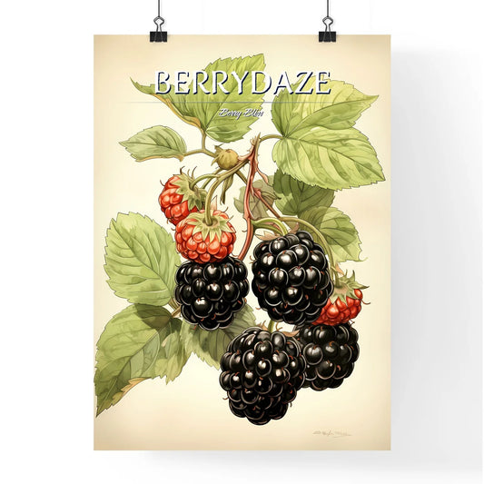 A bunch of purple grapes covered in snow - Art print of a bunch of purple grapes with leaves and snow