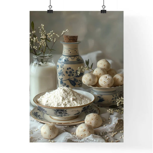 Hyper-realistic Image: Bowl, Flour, Milk Bottle, Sugar Pot - Vibrant Painted Art