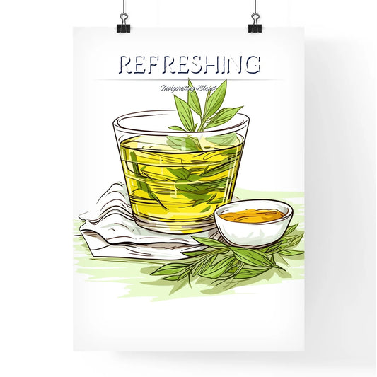 Green Tea On A White Background - A Glass Of Liquid With Leaves And A Bowl Of Honey