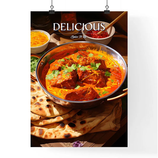 Indian Curry Lamb Rogan Josh In A Steel Karahi - A Pot Of Food With A Sauce And A Bowl Of Food