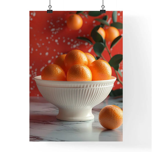Colorful Playful Conceptual Minimalist Orange Balls White Bowl Red Background Painting-Style Artwork