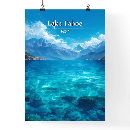 Lake Tahoe, USA - Art print of a blue water with mountains in the background