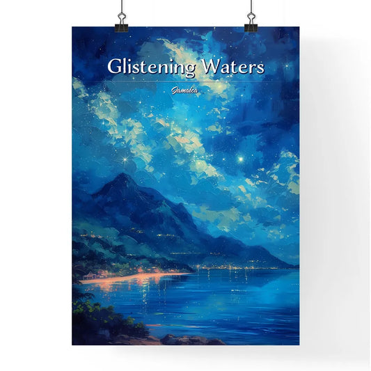 Glistening Waters Luminous Lagoon, Jamaica - Art print of a painting of a mountain and a body of water