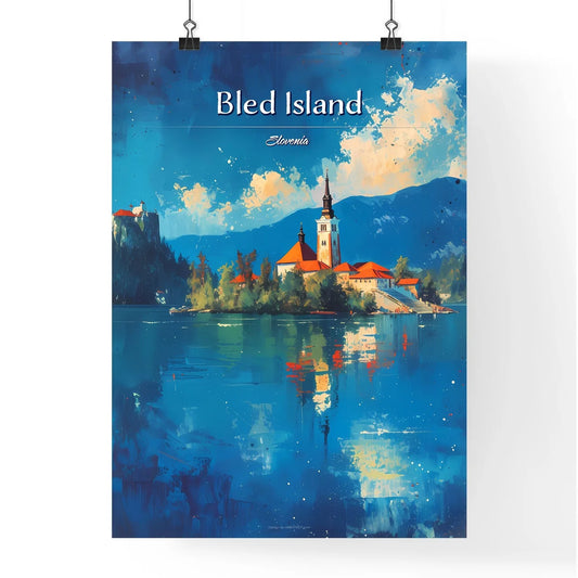 Bled Island, Slovenia - Art print of a painting of a building on an island in a lake